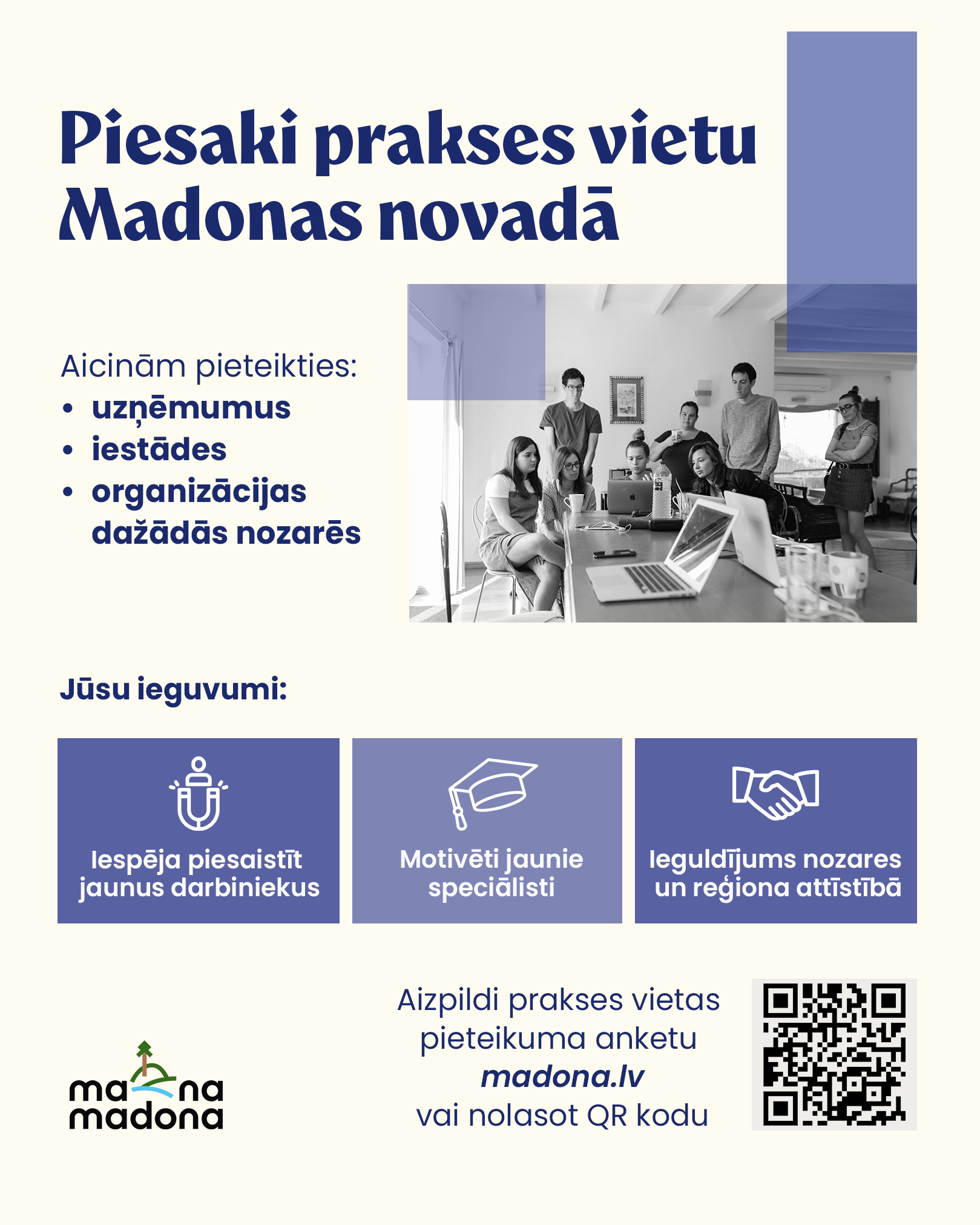 Prakses vietu pieteikuma anketa- https://ej.uz/prakse_madona2026.